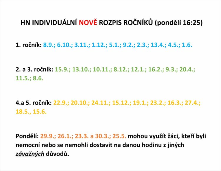Individuální výuku HN schvaluje ve výjimečných případech vedení ZUŠ